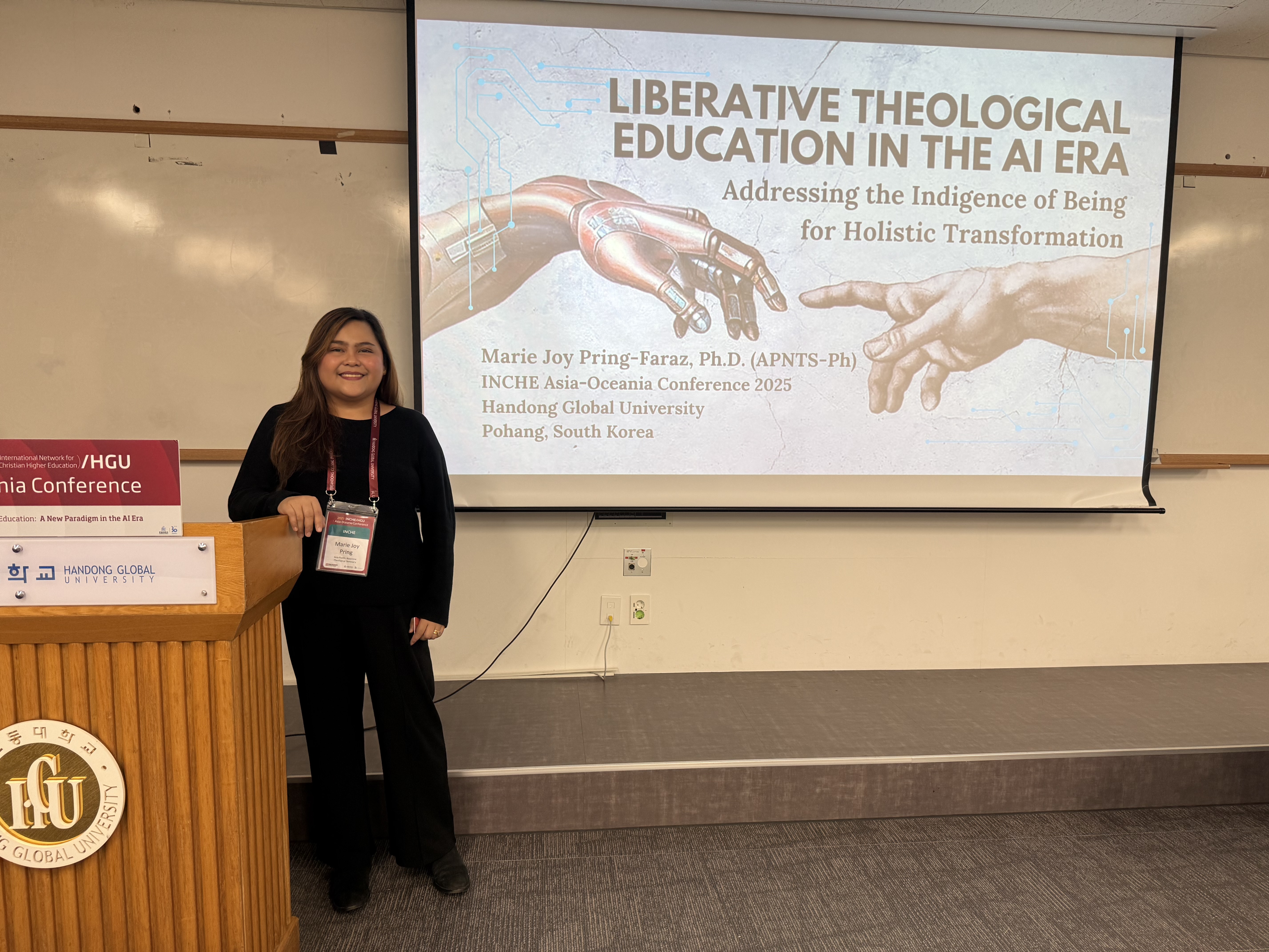Representing APNTS, Dr. Marie Joy Pring-Faraz presented her paper, “Liberative Theological Education in the AI Era: Addressing the Indigence of Being for Holistic Transformation.” Her research draws on Engelbert Mveng’s concept of the “indigence of being,” emphasizing that theological education must serve as a liberative force against existential deprivation and digital colonization. Dr. Pring-Faraz, inspired by Dr. Allder and Dr. Ackerman’s Emmaus Model, proposes that just as Christ walked alongside the disheartened, theological schools must walk alongside students navigating both existential poverty and technological disruption. AI must be integrated in ways that foster genuine encounter, dialogical learning, and transformative insight. This means seminaries must become places where technology is scrutinized through the lens of liberation, where algorithms are tested against the values of dignity and shalom, and where students are formed not only as scholars but as resilient leaders who resist oppression and embody compassion.